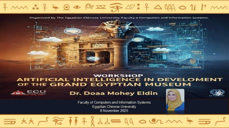 Coinciding with the opening of the Grand Egyptian Museum, and as part of enhancing Egypt’s cultural identity globally, the Faculty of Computers and Information Systems announces a workshop entitled: “Artificial Intelligence in the Development of the Grand Egyptian Museum: Where the Ancient Past Meets the Smart Future.”